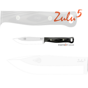 Designed for versatility, the Zulu 5 features a 5" blade with a slight wider belly, ideal for skinning and butchering tasks. Its curved back enhances efficiency when scraping fat wood, while the drop point style and 13-degree grind ensure lightweight agility and formidable strength.